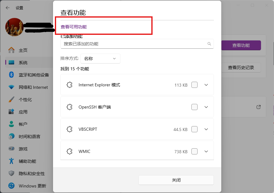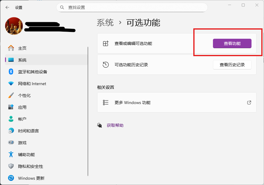 (3)在“可选功能”页面,点击“查看功能”。